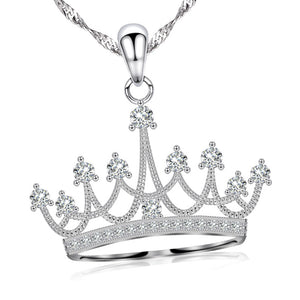 925 Sterling Silver Round Cubic Zirconia Crown Pendant Necklace Queen Jewelry for Women with 18" Silver Chain