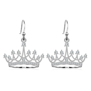 925 Sterling Silver Round Cubic Zirconia Crown Dangle Earrings Queen Jewelry for Women