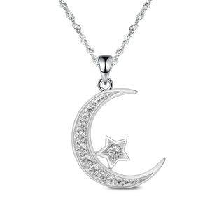 925 Sterling Silver Moon Necklace Cubic Zirconia Crescent Moon Star Phase Pendant Necklace Dainty Chain 18" Chain (Crescent Moon)