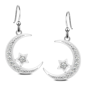 925 Sterling Silver Round Cubic Zirconia Crescent Moon & Star Dangle Earrings Star Jewelry for Women