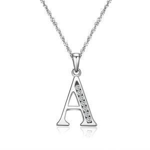 S925 Sterling Silver Initial Necklace Jewelry Cubic Zirconia Letter Alphabet Phase Pendant Necklace 18" Chain Silver A