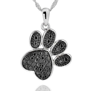 925 Sterling Silver Diamond Accent Black Plated Paw Print Pendant Necklace